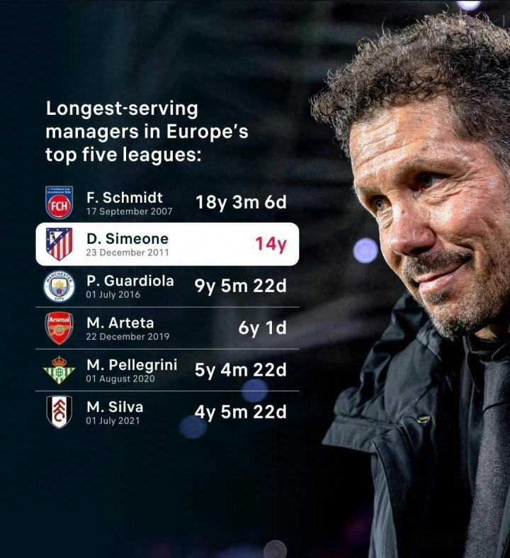 恒久持教使主帅或者深切贯彻我方的计谋理念,诞生完善的青训体系,并打造独有的球队文化。施密特用了18年将海登海姆从底层带到德甲;西蒙尼用了14年将马竞打变成能与皇马、巴萨抗衡的强队;瓜迪奥拉用了9年将曼城塑变成英超霸主。